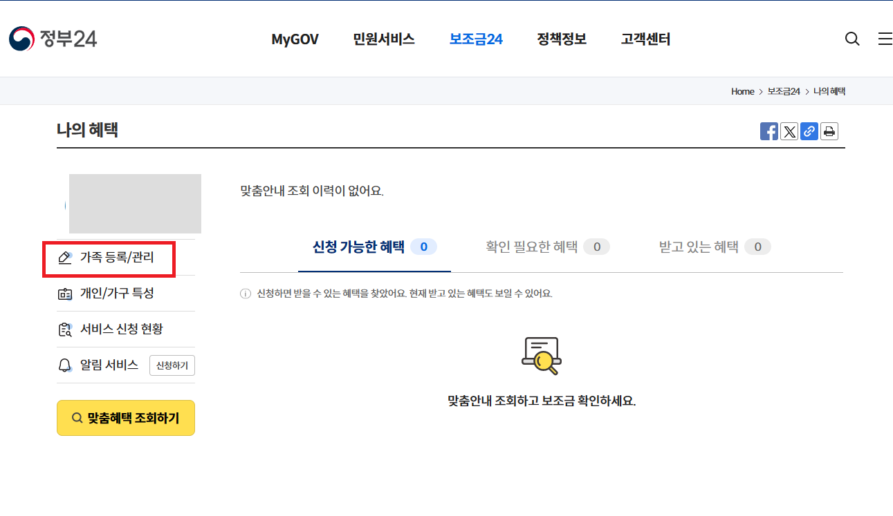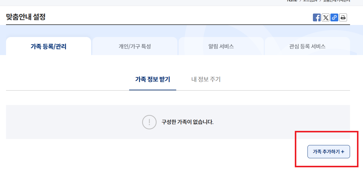 6. 가족 구성원이 있다면 등록하여 같이 조회가 가능