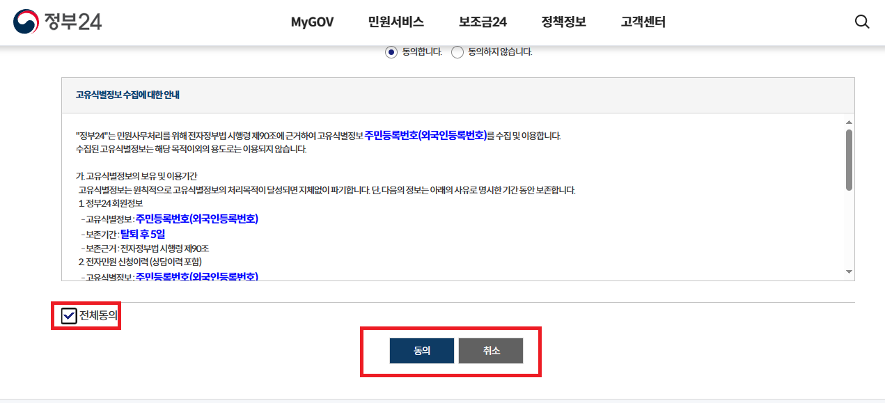 8. 가족구성원 정보 동의 후 확인 하면 혜택 조회가능