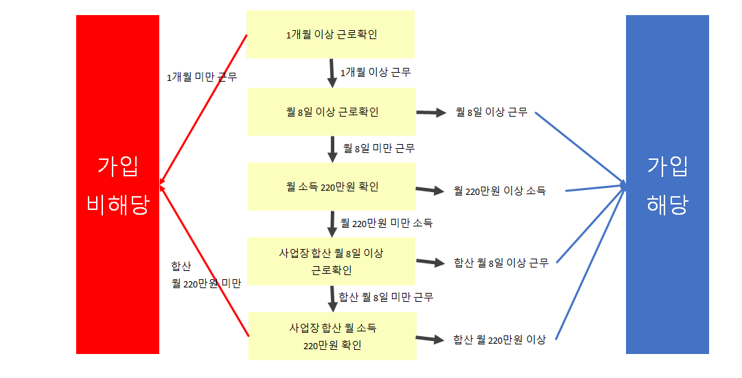 - ✅ 변경 후(7월 1일~): 사업장 단위로 합산하여 8일 이상 근로 또는 월 소득 220만 원 이상이면 국민연금 대상